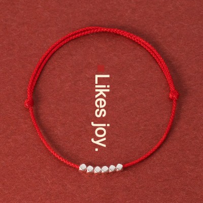 Nalan s925 Silver Shattered Silver Red Rope Bracelet with Simple Design and Cut Surface Bead Weaving Hand Rope