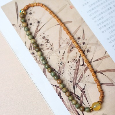 Green Sandalwood DIY Simple Style Bracelet Ethnic Style Prayer Bead Decoration Bracelet Women's Jewelry Cultural Play Feng Shui Fortune Attraction
