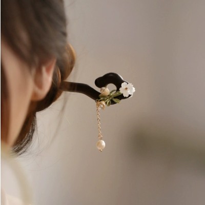 Flower wood hairpin popular style, simple jasmine and gardenia flower hairpin, new Chinese style cool ancient style hair accessories, daily feng shui