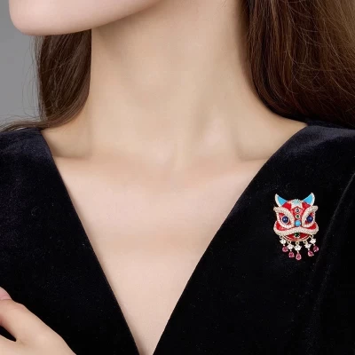 2025 New Chinese Style China-Chic Lion Rising Brooch New Year Gift Suit Sweater Accessories Coat Pin Blossom Girl