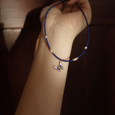 Natural Lapis Lazuli & Freshwater Pearl Necklace, Mind-Calming for Better Sleep, Disaster-Dispelling & Wisdom-Enhancing, Feng Shui Auspicious Jewelry
