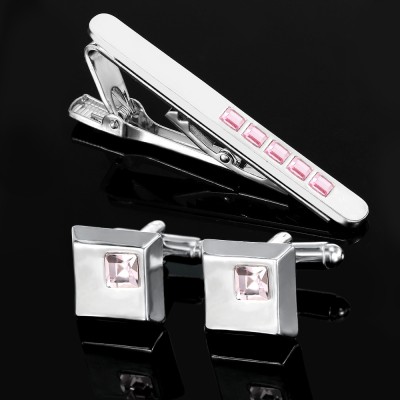 Essential Pink Quartz Cufflinks & Tie Clips for Men, Harmonize Aura and Promote Love Fortune