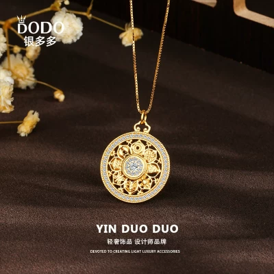 S925 pure silver diamond inlaid eight treasure compass necklace, women's ancient law inheritance pendant, golden ethnic style and fortune brand sweater chain