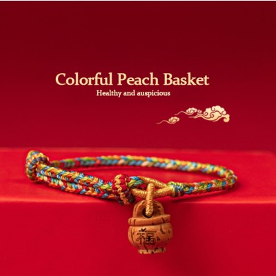 Peach wood hand rope carving, hand weaving, women's baby colorful rope, adjustable baby men's bracelet, children's safety ankle chain