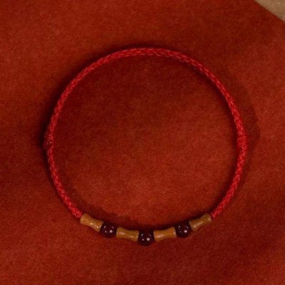 Old peach wood on shore bamboo nodes cinnabar red rope fine bracelet daughter baby zodiac year new Chinese style artificial weaving