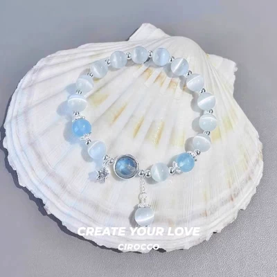 Butterfly Cat Eye Bracelet for Female Ins, niche design, imitation sea blue, treasure gray, moonlight crystal bracelet, gift for girlfriend, female