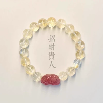 Natural pale yellow crystal bracelet, rainbow yellow crystal, Pixiu feng shui, attracting wealth, benefactors, and career change