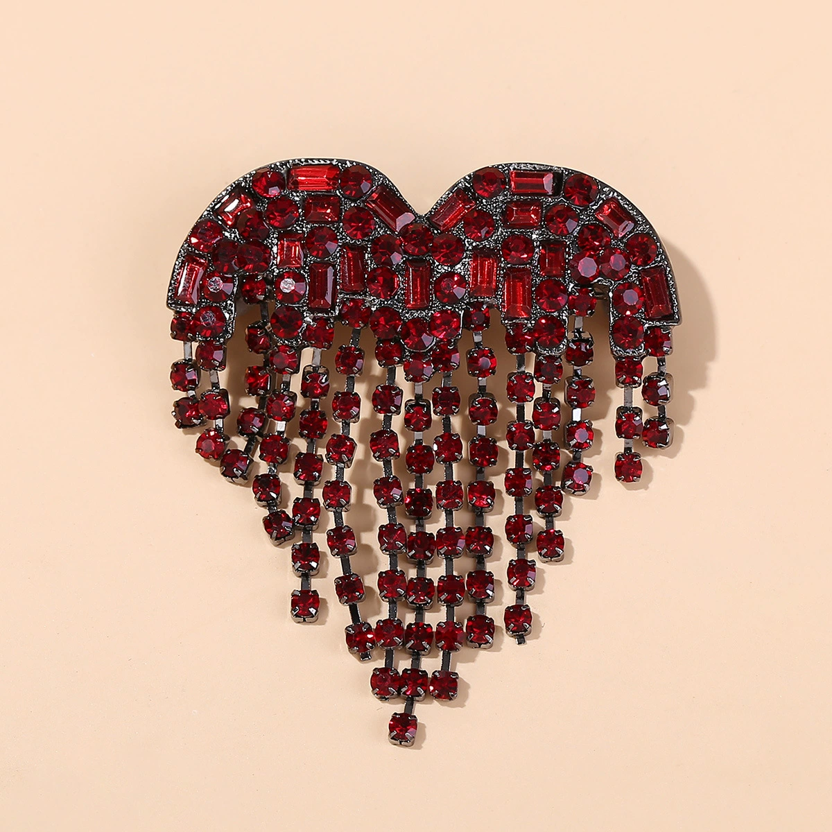 New heart-shaped tassel brooch collar anti glare pin high-end chest flower explosive accessory personality