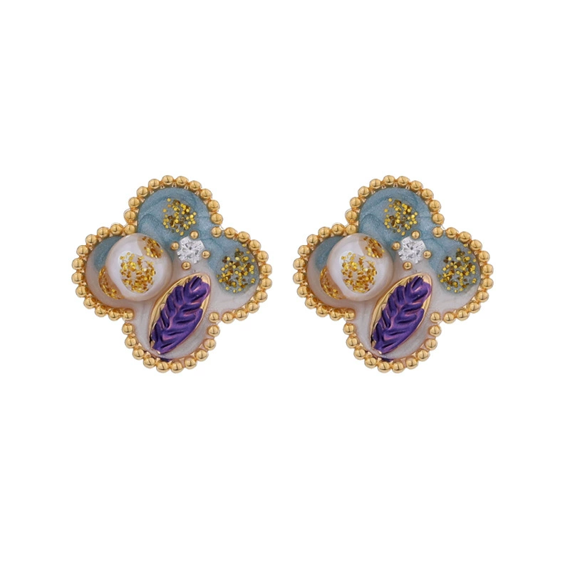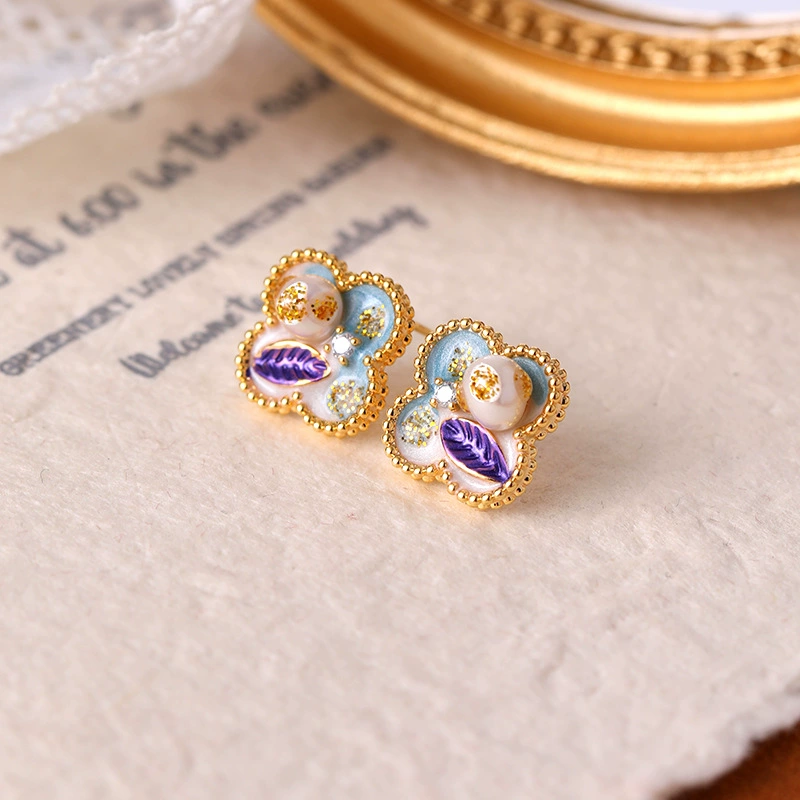 New Chinese retro summer painted enamel flower earrings for women, simple and fashionable temperament, light luxury earrings, niche and unique