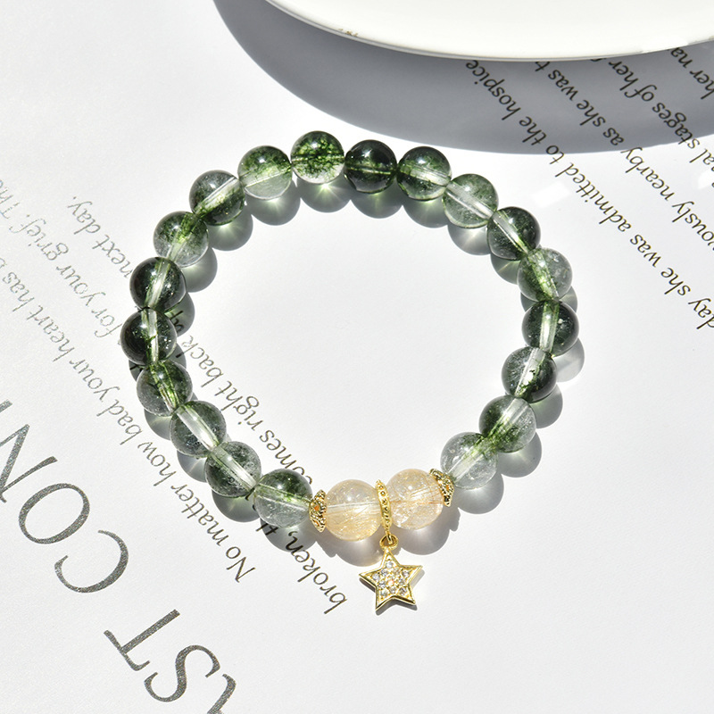 【 The Wizard of Oz 】 White Blossomed Green Ghost Crystal Bracelet for Female Niche, Golden Hair Crystal Star Bracelet