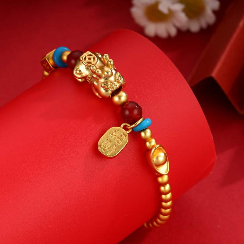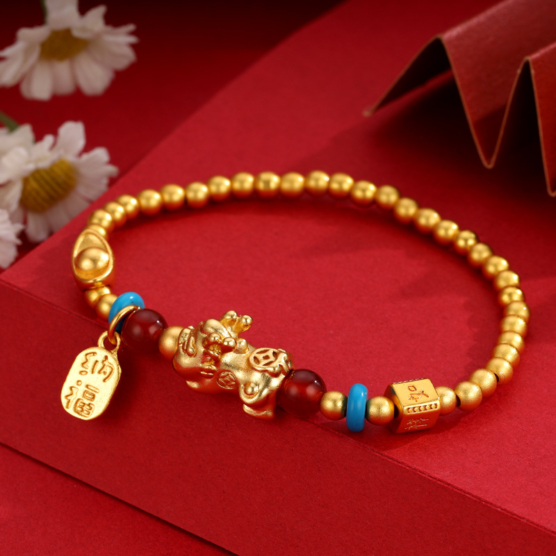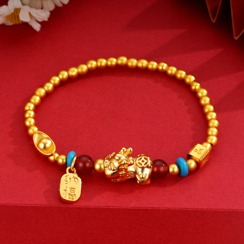 The golden Pixiu — a mythical creature revered for attracting prosperity — stands out as a sophisticated accent. The gold plating enhances visual appeal and adds a sense of premium quality.