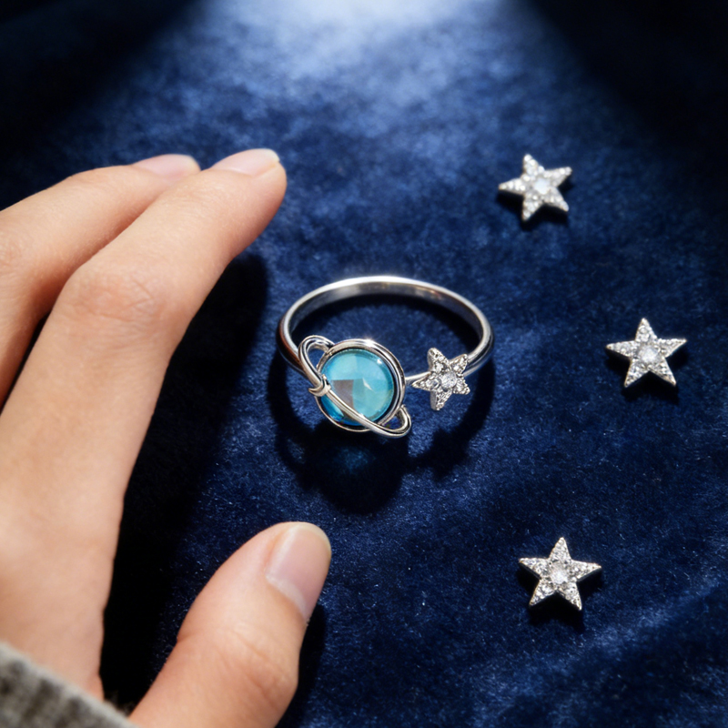 This planet-themed spinner ring is designed for women who love calm, beauty, and meaning. The rotating cosmic element offers a soothing tactile experience, adding a stylish touch to everyday wear. Perfect for daily outfits, relaxing moments, or thoughtful gifting.