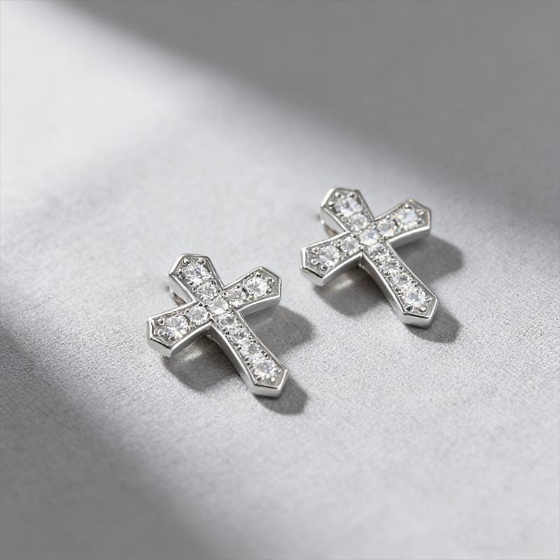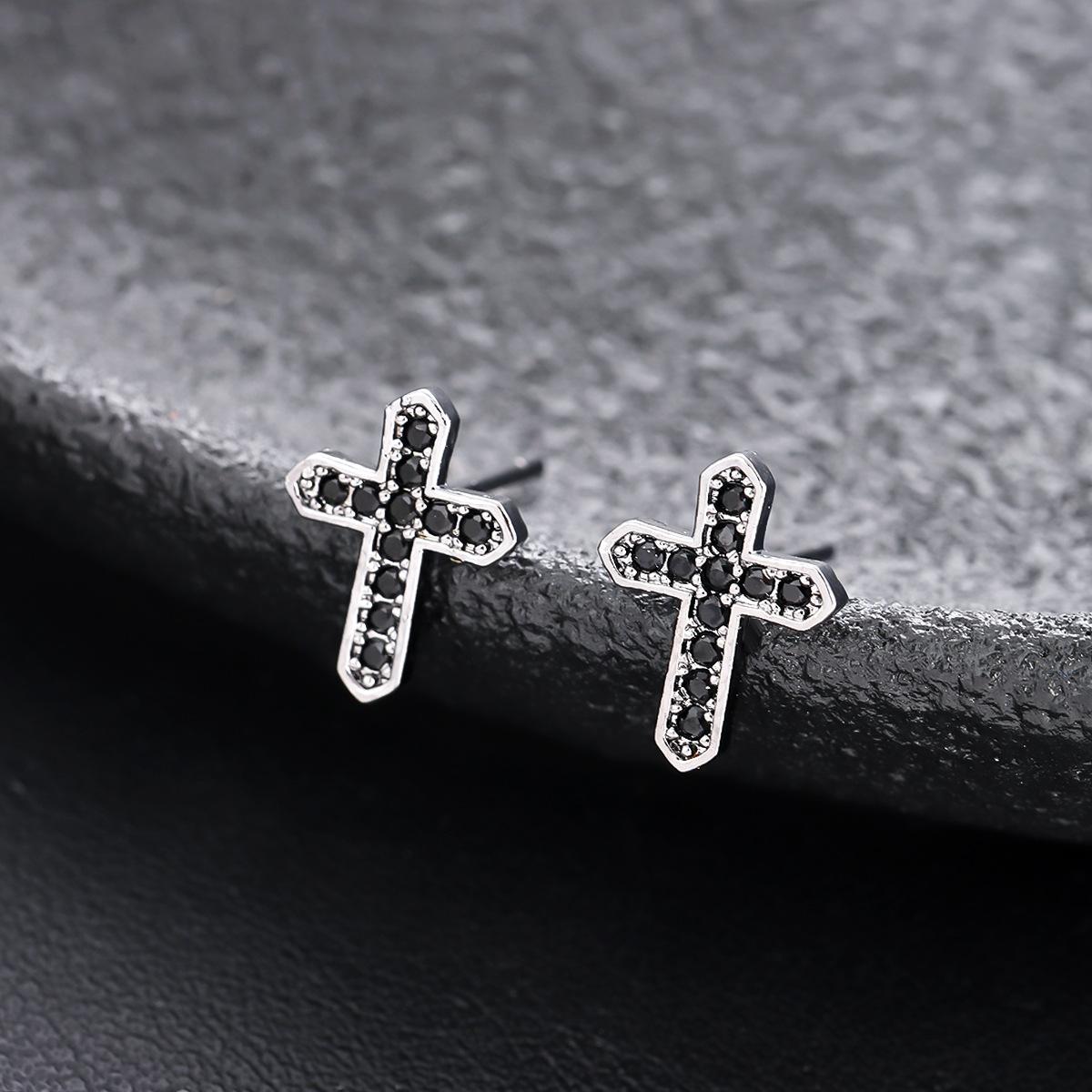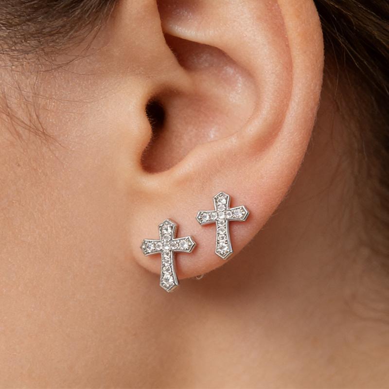 Women & MenEveryday Sterling Silver Cross Stud Earrings with CZ | Minimal Gold/Silver Lucky Layering Jewelry