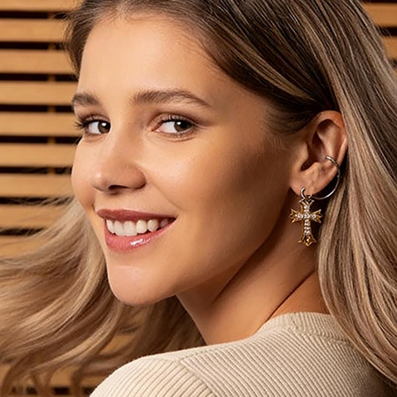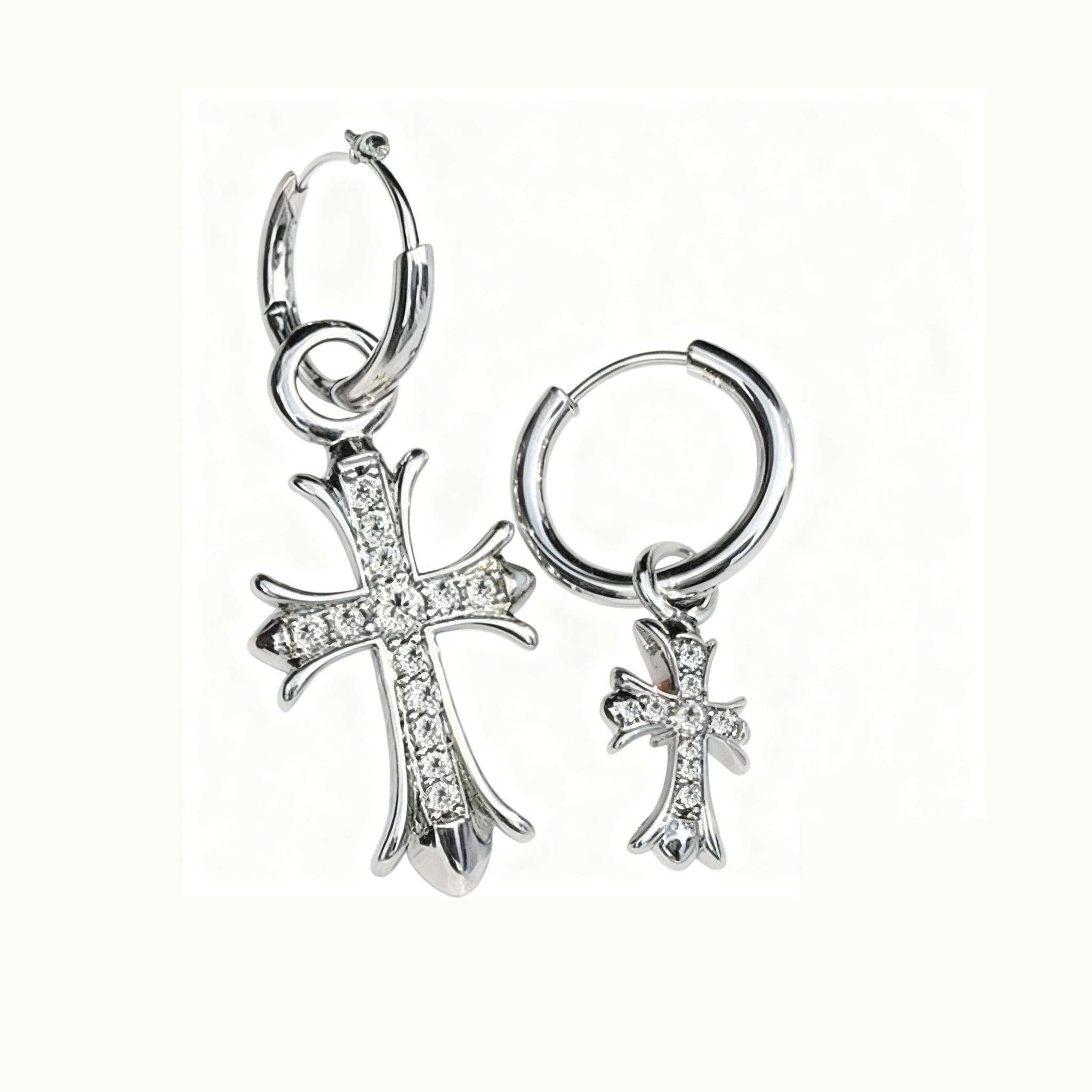 The cross symbolizes faith, protection, and individuality, while the sparkling diamonds represent confidence and success. Wearing these earrings showcases a unique style, conveys bold personality, and serves as a meaningful fashion statement.