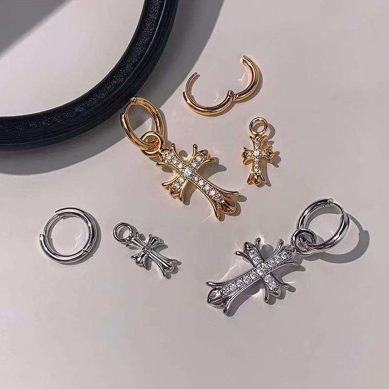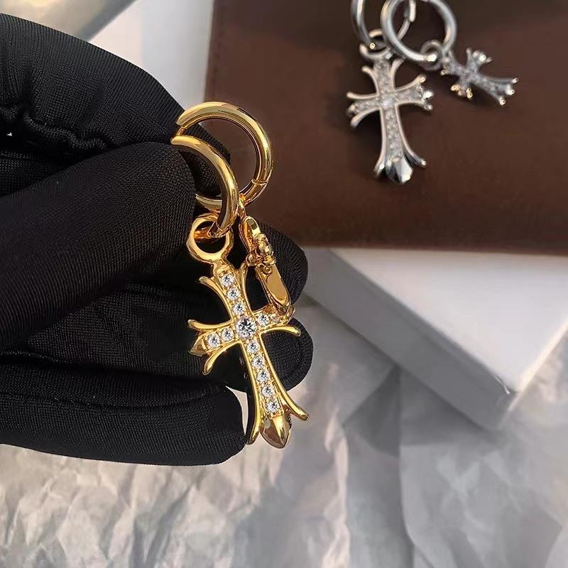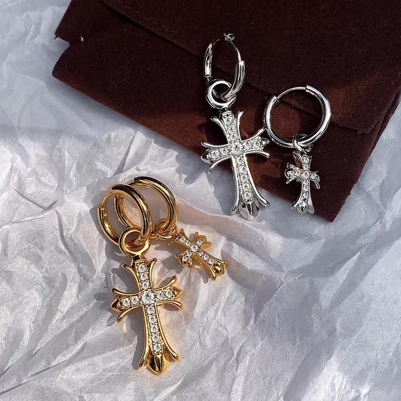 Discover the perfect blend of style and individuality with these AB-style cross earrings. Available in gold and silver tones and adorned with sparkling diamonds, they are inspired by the iconic “Chrome Hearts” aesthetic. Ideal for fashion-forward women who want to make a bold statement on any occasion.