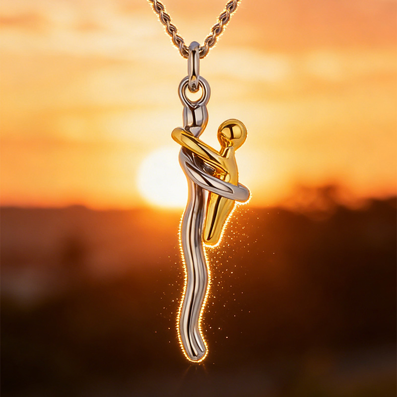 Celebrate the unbreakable bond between mother and child with this elegant hug necklace. Crafted in silver and gold tones, the design captures a warm embracing moment, making it a meaningful accessory for moms. Perfect for daily wear or as a heartfelt gift for Mother’s Day and special family occasions.