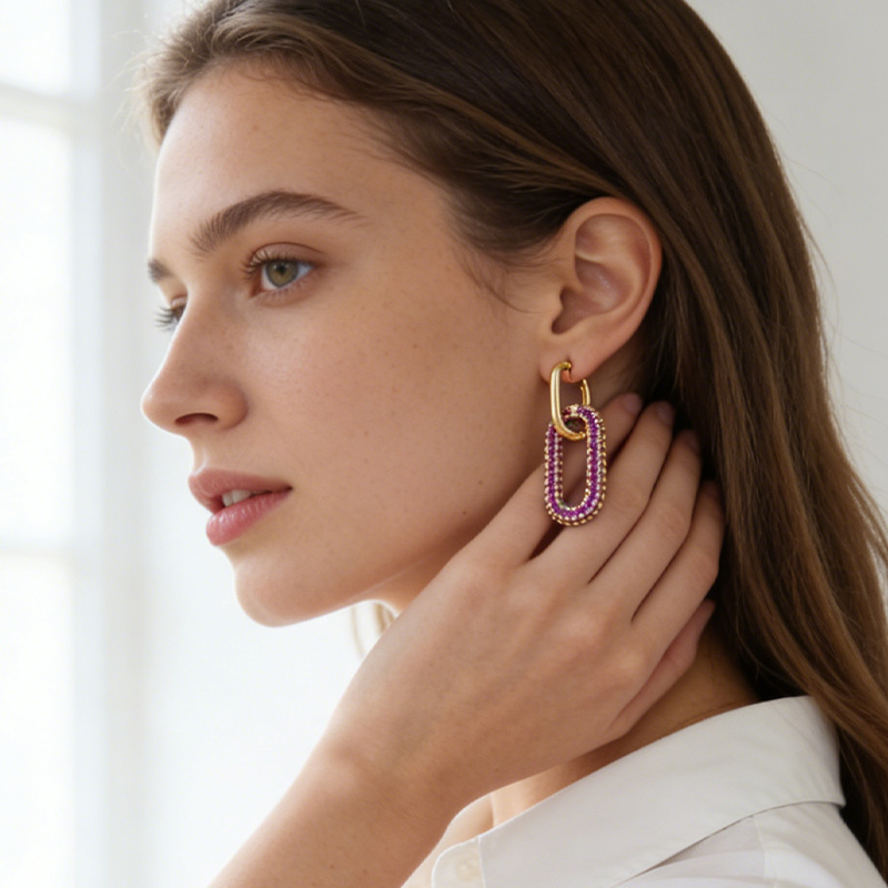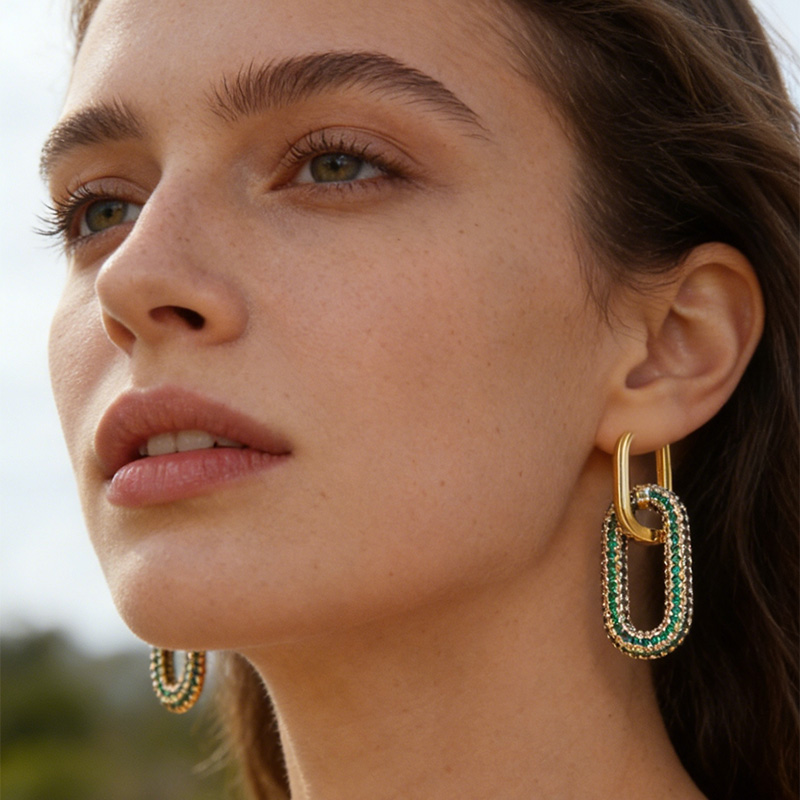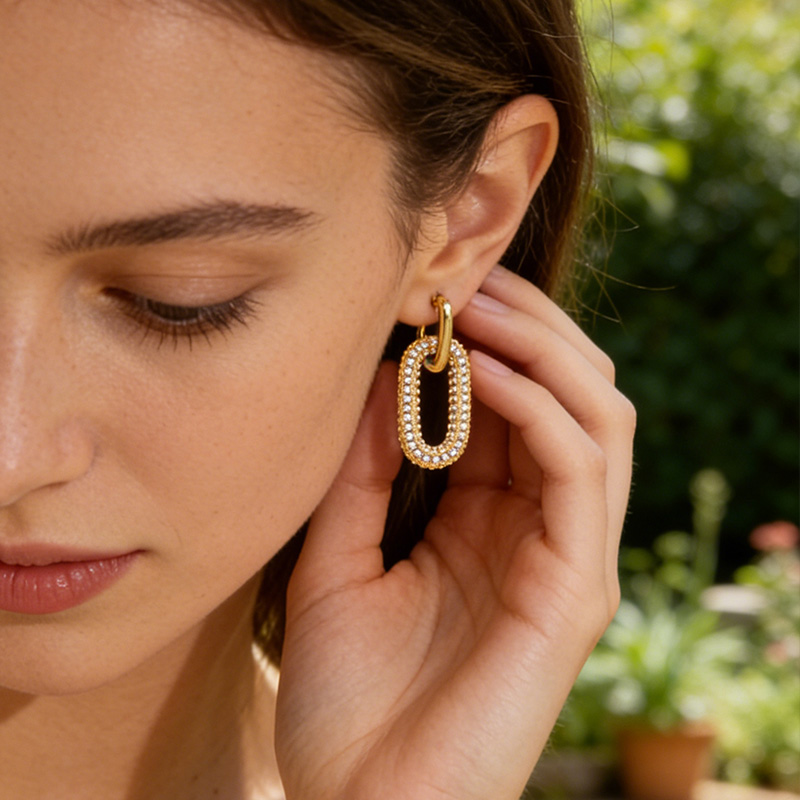 The oval shape represents harmony and balance, while the sparkling diamonds symbolize confidence and brilliance. These earrings express modern femininity—bold, elegant, and effortlessly stylish—making them a statement of self-expression and refined taste.
