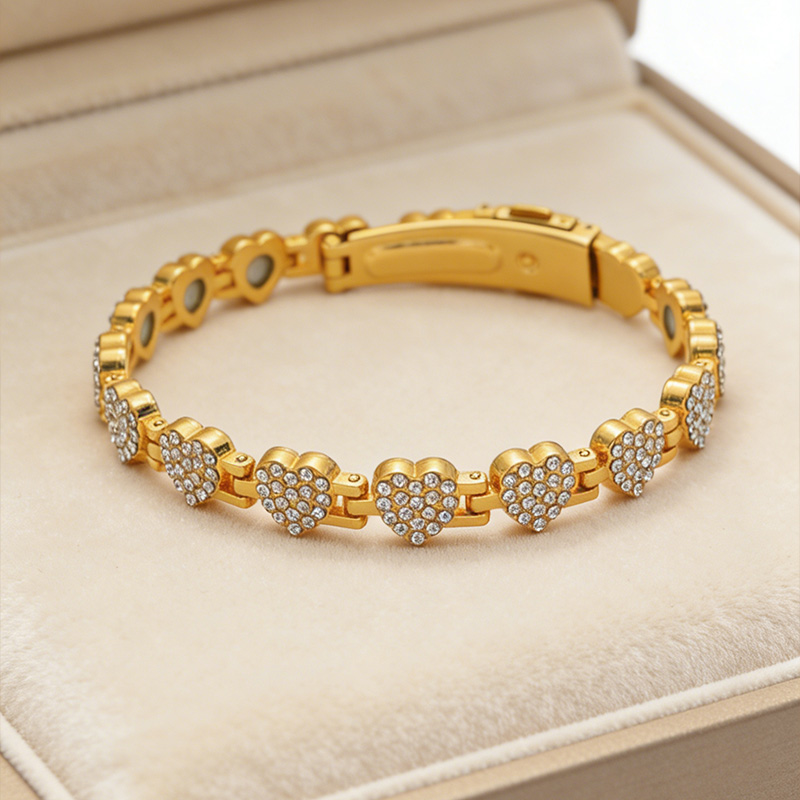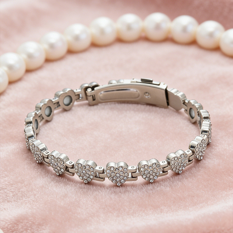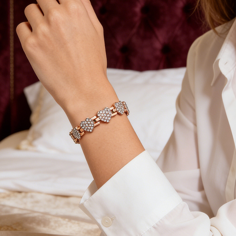 Make a bold and stylish statement with this diamond heart magnetic bracelet. Designed for women who love modern fashion with a personal touch, this bracelet features a sparkling heart motif and a unique spliced design. The magnetic closure adds both convenience and a sleek, contemporary feel, making it perfect for parties or everyday wear.